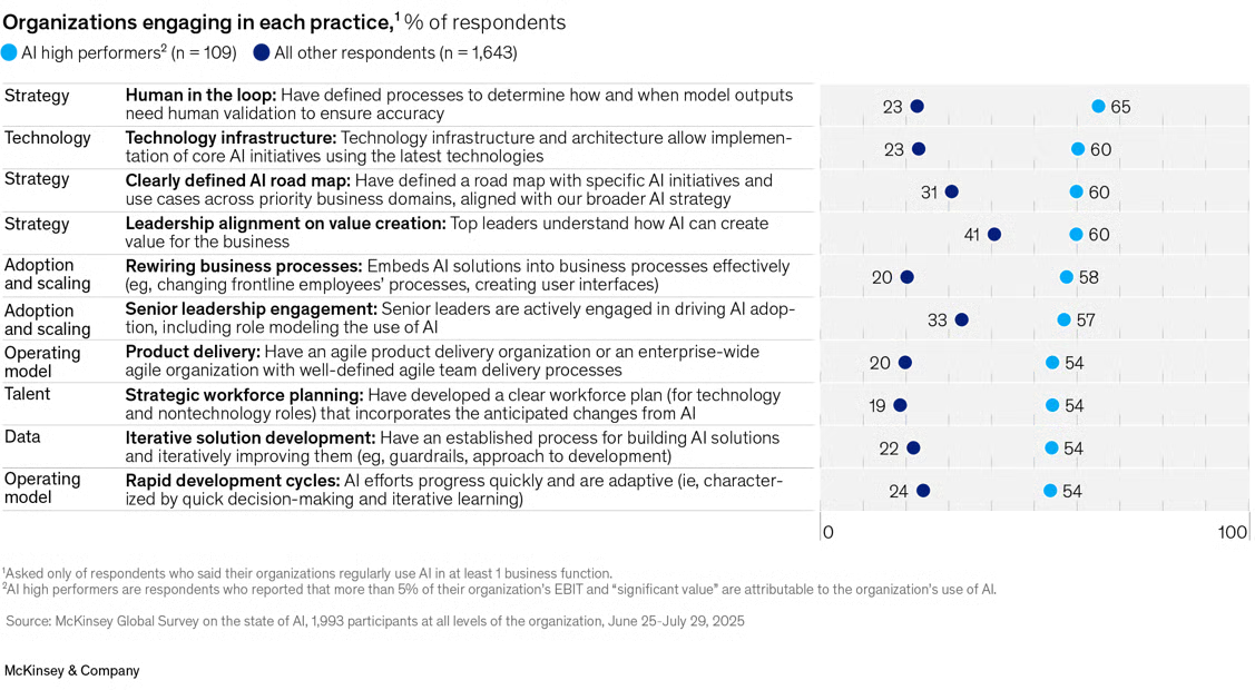 On the other hand, organizations which successfully adopt AI tools tend to have the following characteristics: